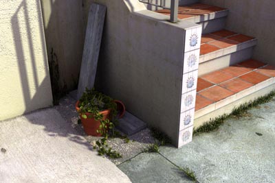 [06 06 2001] - The latest render of this scene, almost final now but still a few textures that need to be added. The railing and the wall on the left still needs to be touched up.