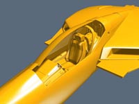 [03 13 2001] - Got a few moments yesterday, so finished up (I think) the cockpit modelling. Also the wings and about 50% of the tailfins, I dont have a render of the latter yet but will put one here as soon as possible. Played a bit with a raytraced reflection material as well.